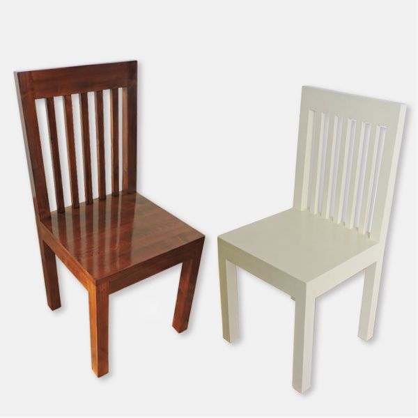 Scaun din lemn masiv cu spătar şi şezut netapiţat, avantajul lor fiind curăţarea facilă şi eventual folosirea unor huse detaşabile.